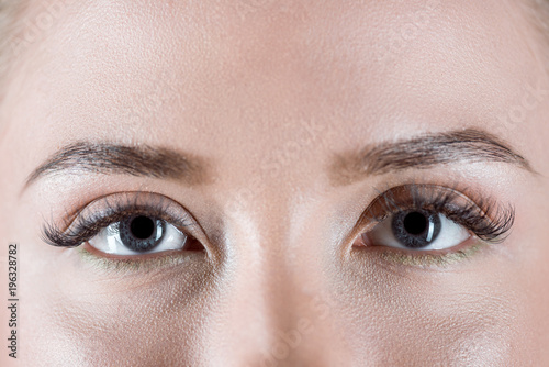 Fototapeta premium Close-up view of grey female eyes with long eyelashes