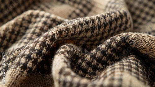© Emin, Fototapeta premium Close up view of knitted brown gingham fabric