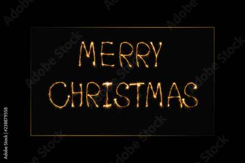 Obraz premium close up view of merry christmas light lettering on black backdrop