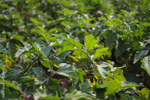 Obraz premium Close-up view of purple eggplant fields in Indonesia