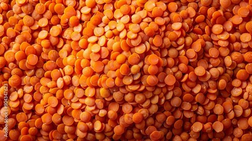 Fototapeta premium Close up view of red lentils showing texture and color variation