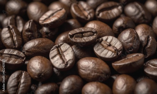 Fototapeta premium Close-Up View of Roasted Coffee Beans in Rich Detail. Coffee background