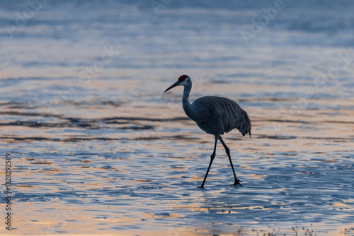 © SNEHIT PHOTO, Fototapeta premium Close up view of Sandhill crane on the Ice lake.