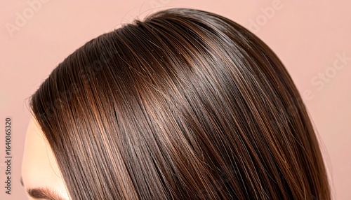 Obraz premium Close-up view of smooth, healthy-looking brown hair.