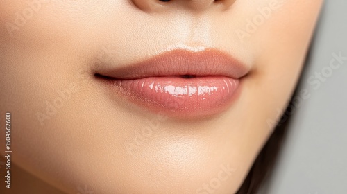 Fototapeta premium Close-up view of soft, beautiful, human lips with a natural, subtle gloss.