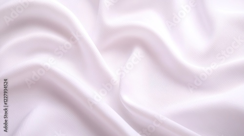 © Nikolai, Naklejka premium close-up view of soft fabric fold detailed weave pattern illuminated gently against pristine white backdrop