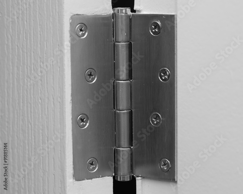 © ImagineDesign, Naklejka premium close up view of stainless door hinges on a white door