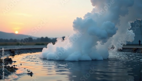 Obraz premium Close-up view of steam rising from cooling tower, construction, texture, air