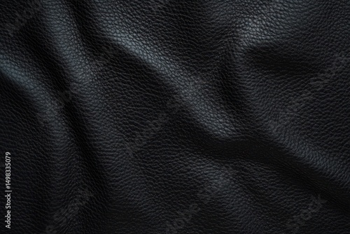 Obraz premium Close-up view of textured black leather surface with natural wrinkles and grain pattern