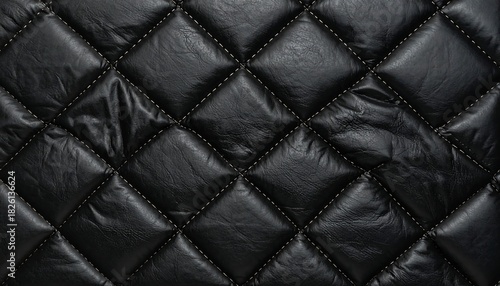 Obraz premium Close-up view of textured, black, quilted leather pattern