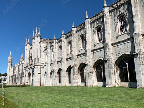 Fototapeta premium Close-up view of the facade of the beautiful Hieronymites Monastery of...