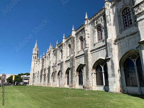 Fototapeta premium Close-up view of the facade of the beautiful Hieronymites Monastery of...