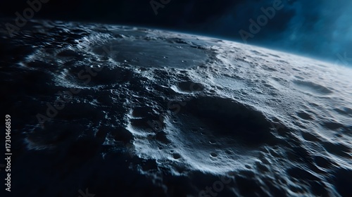 Fototapeta premium Close up view of the Moon s detailed cratered surface illuminated with dramatic light in deep space
