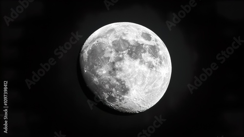 © Infinity, Obraz premium Close-up view of the moon's surface, showcasing its craters and texture against the dark night sky. A celestial masterpiece.