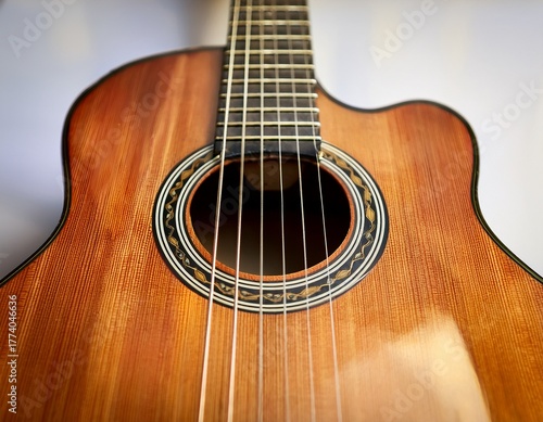 © Kathleen, Obraz premium close up view of the strings and bridge on an acoustic guitar