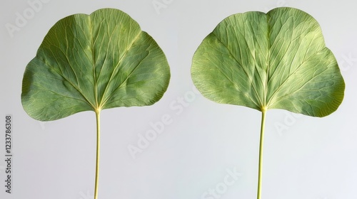 Fototapeta premium Close-Up View of Two Large Green Leaves on Soft Background Emphasizing...