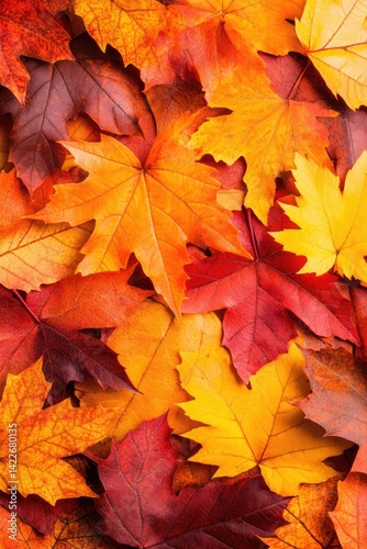 Fototapeta premium Close up view of vibrant autumn leaves, featuring a mix of red, orange, and...