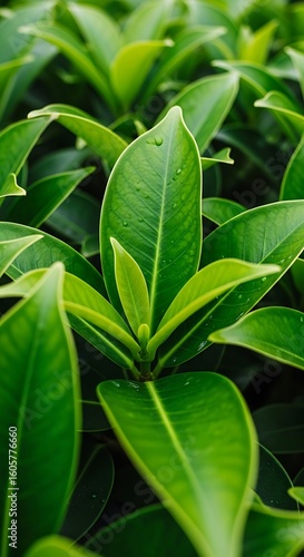© Sugiyo, Obraz premium Close-up view of vibrant green leaves.