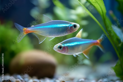 Fototapeta premium Close-up View of Vibrant Neon Tetra Fish Swimming in Aquarium