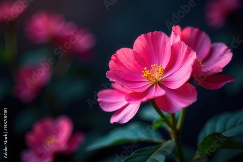 Fototapeta premium Close-up view of vibrant pink blossoms with delicate petals and golden...