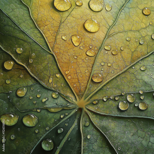 Fototapeta premium Close up view of water droplets on green leaf surface