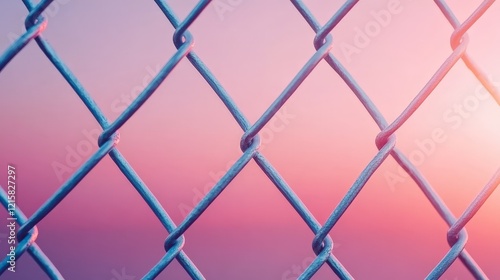 © Tracto, Fototapeta premium Close-Up View of Wire Fence with Colorful Sunset Background and Soft Focus Effect
