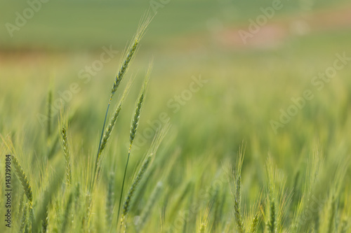 © Dewald, Obraz premium Close up view of Young green wheat growing on a farmland in the Swartland in the Western Cape of South Africa