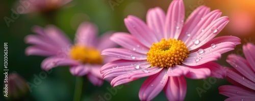 © Baillm, Fototapeta premium Close-up view, rain droplets on daisy, soft focus, blur, soft