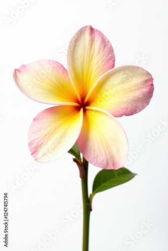 © intothestar, Fototapeta premium Close-up view, single frangipani, creamy yellow & pink, pure white backdrop, close-up, botanical