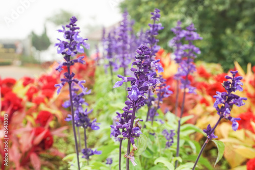 Fototapeta premium close up violet flower garden in winter season with selective focus