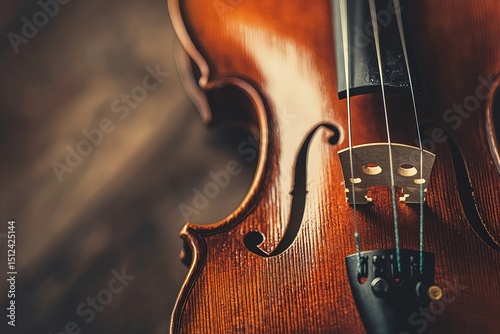 Fototapeta premium Close-up violin with soft lighting highlighting wood grain and strings, set...