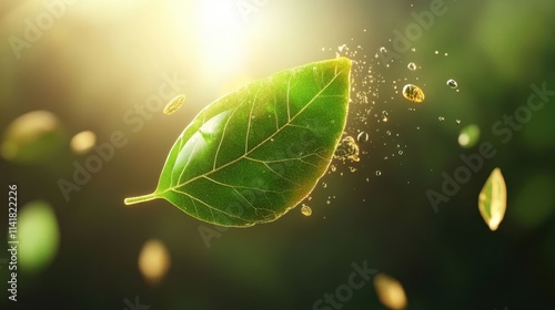 © TYSAMPON, Fototapeta premium Close-up Visualization of Moisture on Leaf