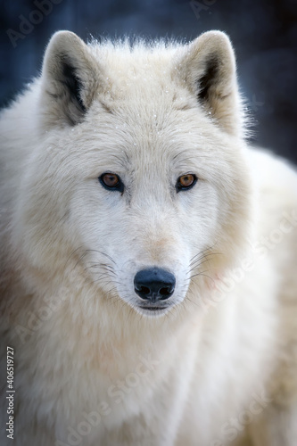 Obraz premium Close up white arctic wolf looking on camera
