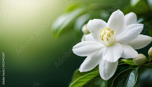 © Emma, Fototapeta premium close up white bloom jasminum sambac in green nature background