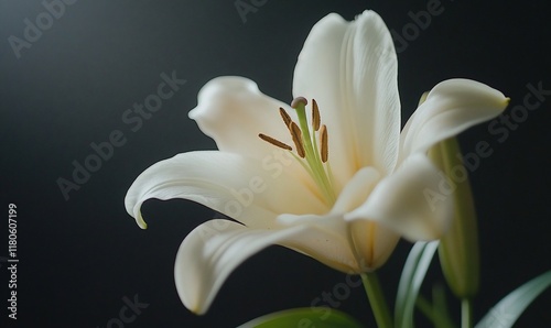 Obraz premium Close-up white lily on dark background