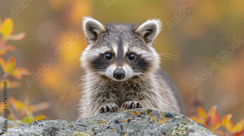 Fototapeta premium close up wildlife photography, authentic photo of a cute raccoon in natural...