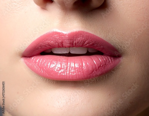 Fototapeta premium Close-up woman's lips, pink lipstick
