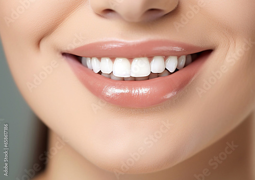 Obraz premium Close up woman smile with detail healthy white teeth.Macro.AI Generative