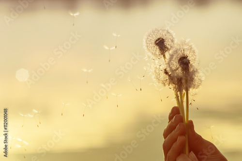 © Andrei Baryla, Fototapeta premium Close-up z nasion mniszka lekarskiego pływające