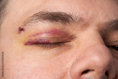 © soleg, Obraz premium close view of a black eye, man's face with a hematoma