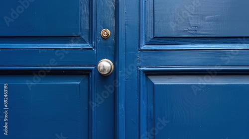 © Екатерина Чумаченко, Fototapeta premium Close view of a closed wooden blue door