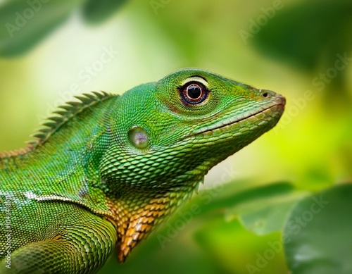 © MdRakibul, Fototapeta premium Close view of a common green forest lizard