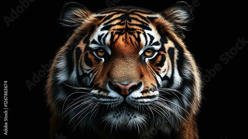 © AdorStudios, Fototapeta premium close view of aggressive siberian tiger in zoo with powerful striped face and piercing eyes showing wild nature and predator instincts in jungle setting