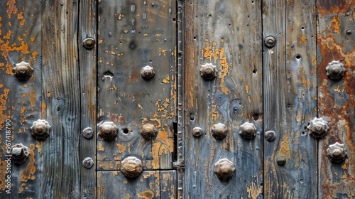 © AbstractAI, Fototapeta premium Close view of an aged wooden door