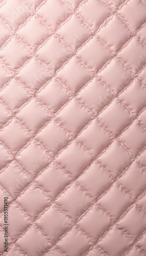 Obraz premium Close view of pink quilted faux leather texture. Diamond stitched pattern on smooth material. Soft textile surface with decorative stitching for backgrounds.