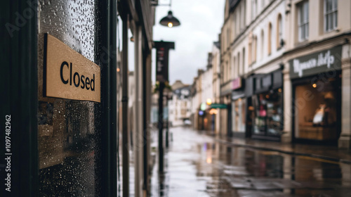 Fototapeta premium Closed boutique storefront with elegant window display, symbolizing the end...