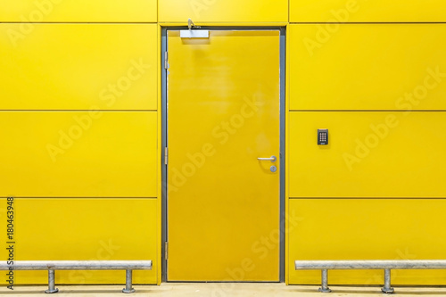 Fototapeta premium Closed door yellow building interior walls, construction