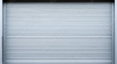 © SyedArshadJaved, Fototapeta premium Closed gray metal security shutter door with horizontal slats and frame