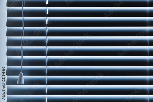© evannovostro, Obraz premium Closed horizontal blue window blinds