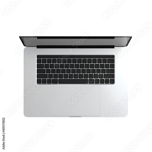 © MstSuborna, Fototapeta premium Closed Laptop with Brushed Aluminum Texture and Minimal Branding, Top-Down View, Isolated on Transparent Background